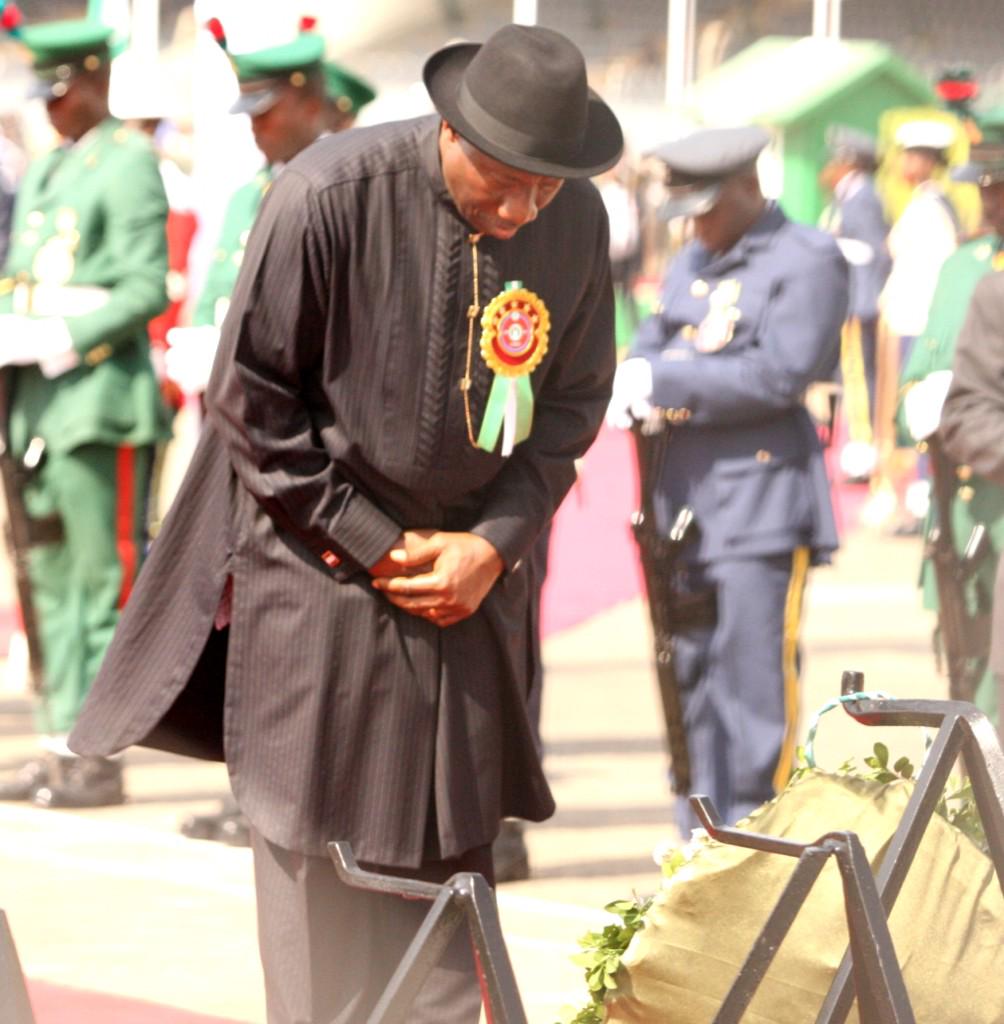 President Jonathan laying a wreath at the 2015 Armed Forces Remembrance Day ceremony in Abuja today.
